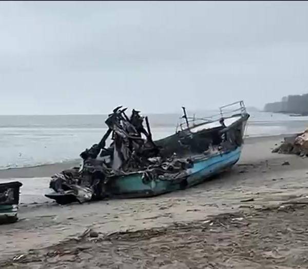 Imagen de una embarcación quemada en Bajo Alto, El Guabo.( )