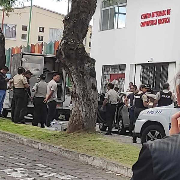 Foto de un carro de Medicina Legal en los exteriores del UPC Textilero de Atuntaqui, Imbabura.( )