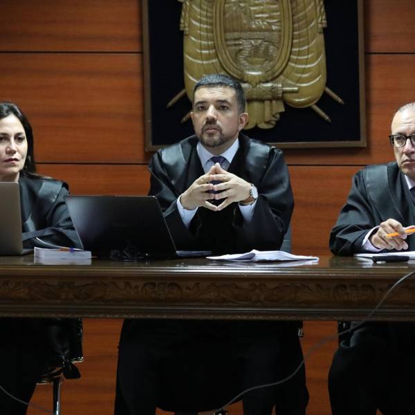 El tribunal conformado por los jueces Felipe Córdova, Rita Bravo y Javier de la Cadena, convocó una nueva diligencia para el 15 de abril de 2024, a las 09:00.