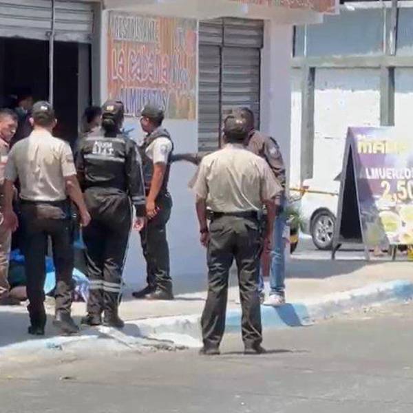 El hecho ocurrió en un restaurante de Manta. La policía acudió al sitio para levantar los cadáveres.( )