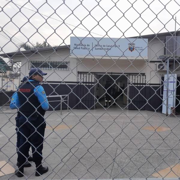 Un equipo de Ecuavisa constató que las instalaciones del centro de salud estaban resguardadas por policías y agentes de seguridad de un empresa privada. El acceso era restringido.