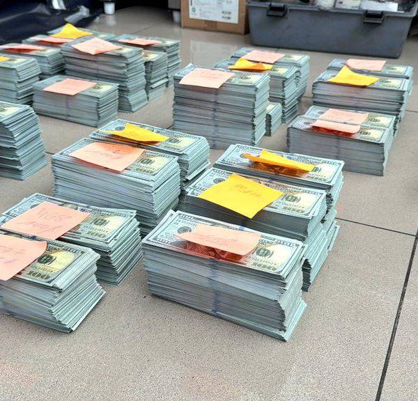 Al ser retenidos, los agentes hicieron una inspección al automotor y encontraron varios cartones que contenían soportes de papel con características similares a billetes de 100 y 50 dólares estadounidenses.
