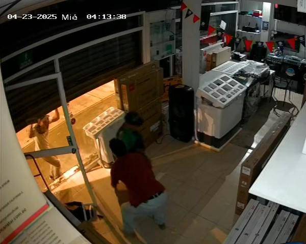 Dos delincuentes ingresaron ue local de venta de electrodomésticos y equipos de computación luego de forzar la puerta a las 4:13 de la madrugada del miércoles.