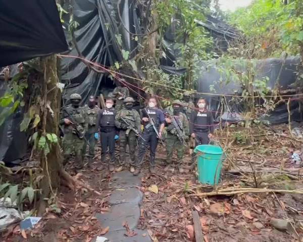 El Bloque de Seguridad, conformado por la Policía Nacional y las Fuerzas Armadas, destruyeron un laboratorio de procesamiento de droga en el límite fronterizo de la provincia de Esmeraldas con Colombia, este sábado 13 de abril.