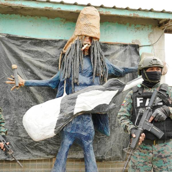 "Él se encargaba de hacer brujerías y satanismo. Lo que él hacía era 'curarle' al a los delincuentes para que vayan y realicen actividades criminales", señaló Santamaría a Ecuavisa. Finalmente, el muñeco fue quemado por las autoridades.