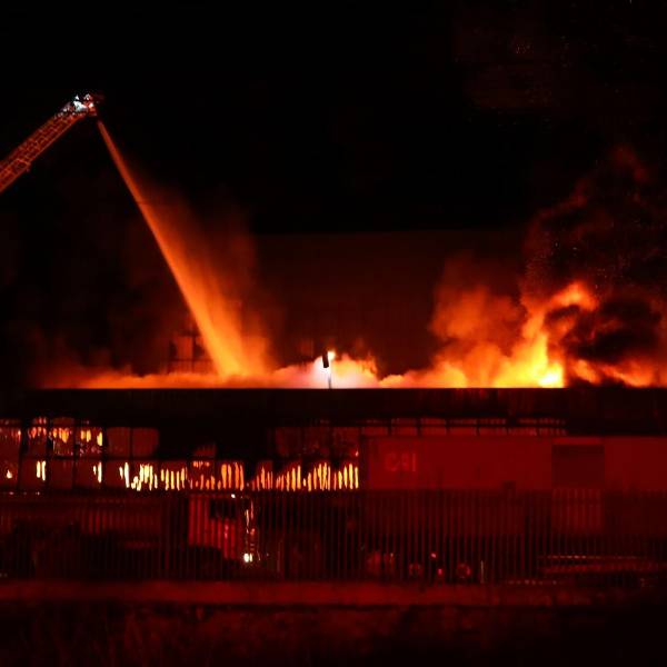 Y ahora comprobaron que el sistema contra incendios aún no se había instalado. Los tubos y las mangueras de dicho sistema se encontraban en la parte frontal del galpón.