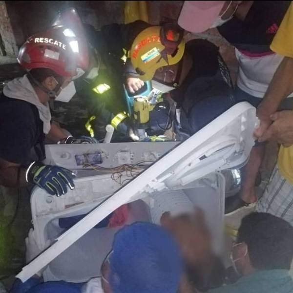 Una familia vivió momentos de angustia luego de que una niña de 2 años quedó atrapada en una lavadora. Personal del Cuerpo de Bomberos acudió al llamado de emergencia y empleó un equipo especial para rescatar a la pequeña. El hecho ocurrió en el sector Los Esteros en Manta, provincia de Manabí.