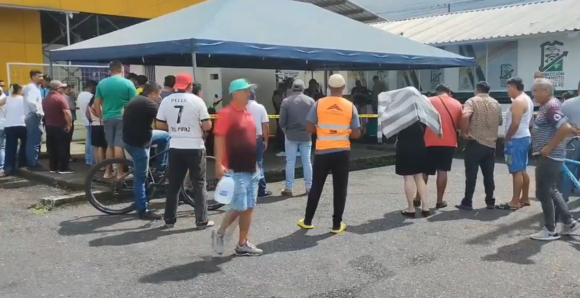 Imagen de personas reunidas en el exterior de la dirección de tránsito de Buena Fe, Los Ríos, tras un asesinato la mañana de este martes 18 de marzo.( )
