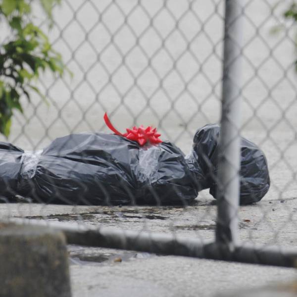 Los bultos rellenos de papel y con forma humana que aparecieron la mañana de este viernes 13 de diciembre afuera de la unidad judicial que funciona en el centro comercial Albán Borja, en el norte de Guayaquil, resultaron ser parte de un proyecto de arte de estudiantes de la Universidad Casa Grande.