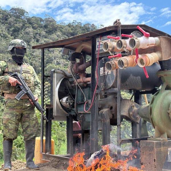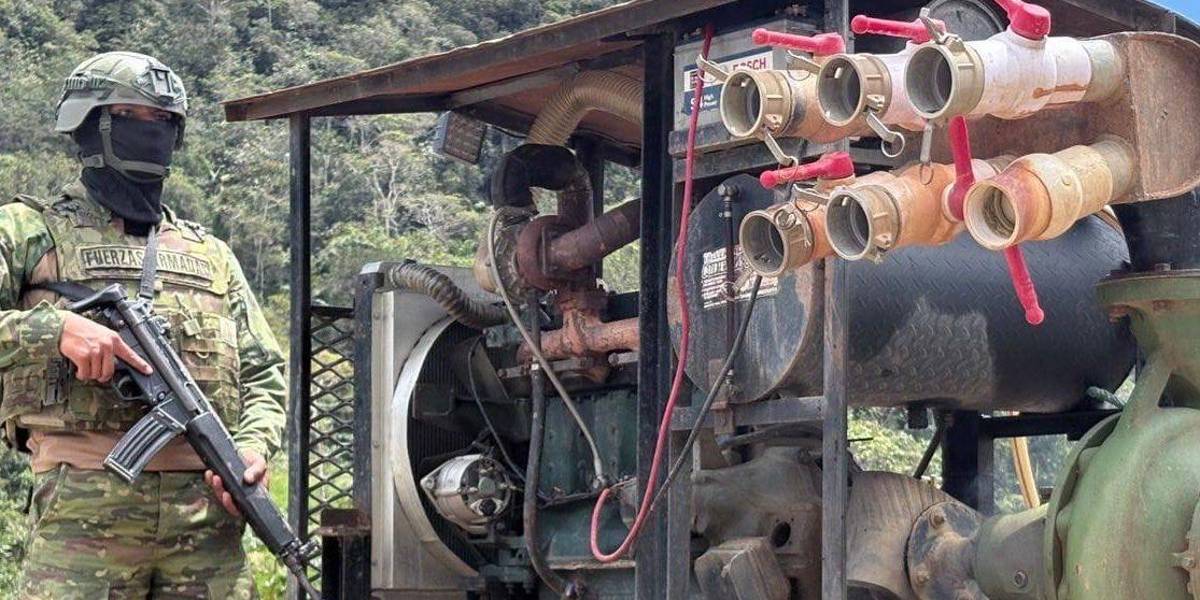 Un campamento de minería ilegal fue desmantelado en el cantón Gualaquiza, provincia de Morona Santiago, por miembros del Ejército Ecuatoriano. El Ministerio de Defensa destacó esta acción como parte de la estrategia del Bloque de Seguridad contra las actividades ilícitas.