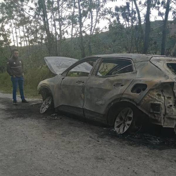Según la Policía Nacional, un vehículo Kia con placas TBK-4069, que había sido quemado, fue encontrado en el ingreso al barrio San Luis, perteneciente a la parroquia Lloa, en el suroccidente de Quito.( )
