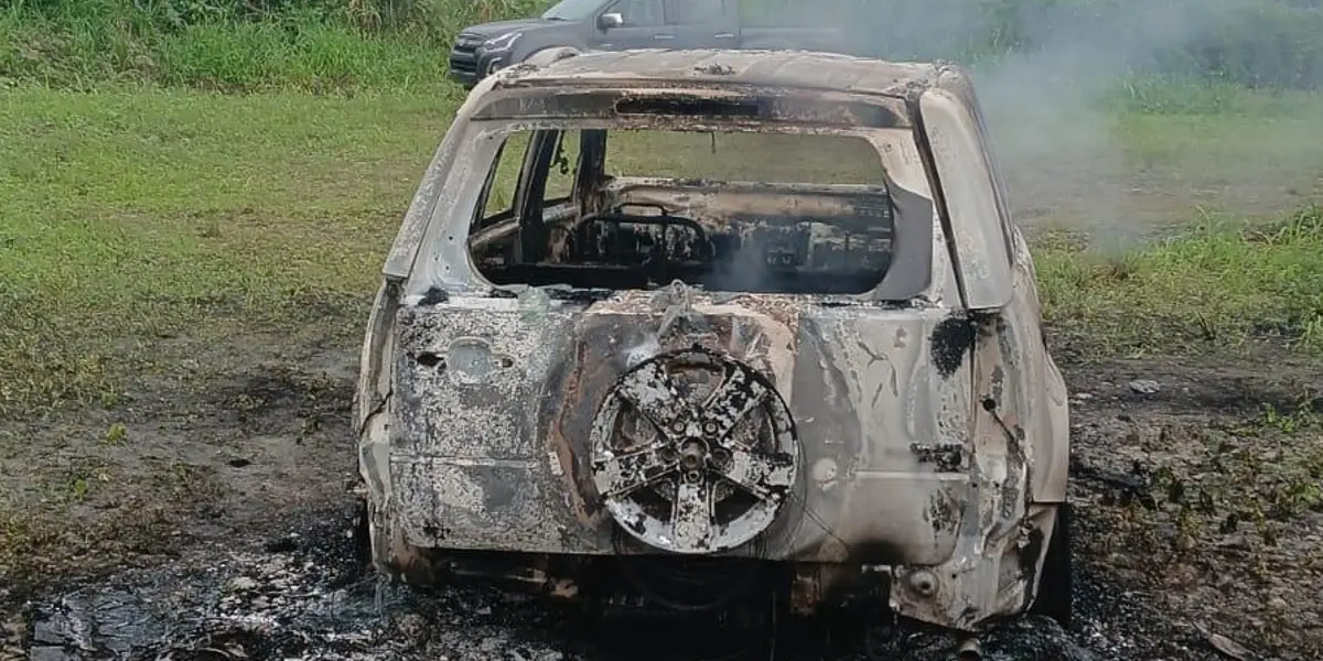 Carro quemado con restos humanos alarma al cantón Camilo Ponce Enríquez, en Azuay