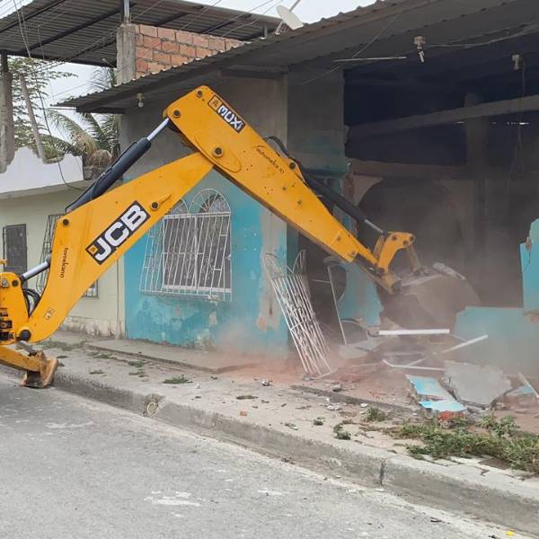 Con maquinaria, agentes de la Policía Nacional y Fuerzas Armadas destruyeron ocho casas presuntamente usadas por los grupos criminales que operan en Durán. El operativo denominado Tormenta 9 se ejecutó este miércoles 27 de noviembre de 2024.