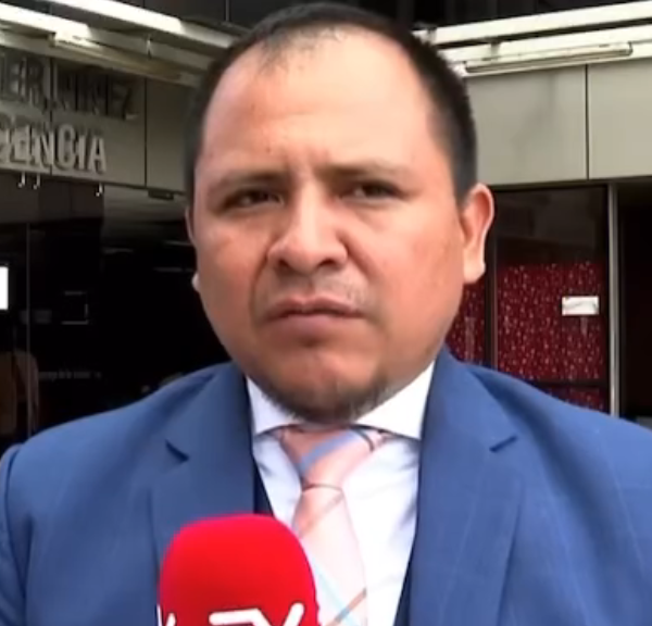 Imagen de César Suárez en los exteriores de una unidad judicial de Guayaquil, concediendo una entrevista para Televistazo.( )