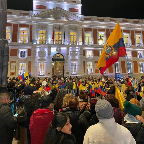 Bajo el lema 'No a la delincuencia, no al narcotráfico' y convocadas por la principal asociación de ecuatorianos en España, unos 300 personas se congregaron en la céntrica Puerta de Sol, que durante una hora se llenó de banderas tricolores y expresiones de apoyo al Estado y rechazo a la violencia.