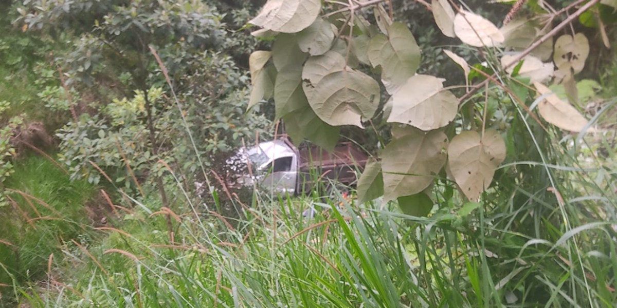 Efectivos de la Policía Nacional señalaron que se trató de un siniestro de tránsito por pérdida de pista de un vehículo tipo camioneta, mismo que se precipitó a un abismo de aproximadamente 50 metros de profundidad.