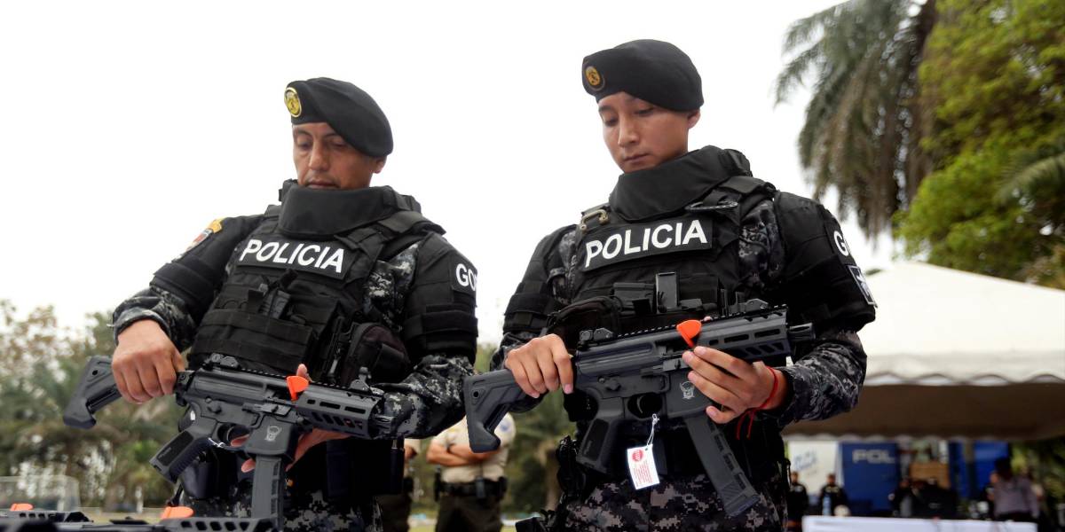 Foto de policías con fusiles entregados por el Gobierno en Quevedo, Los Ríos, en diciembre de 2024.( )
