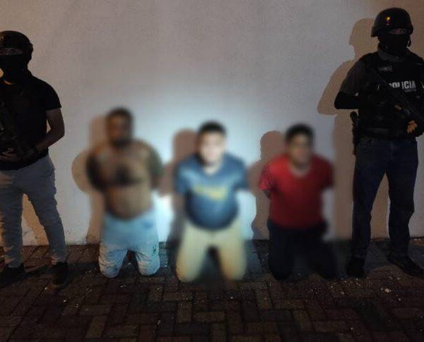 Imagen de tres capturados por el rescate de una mujer en la provincia de Manabí, cerca de la represa Daule-Peripa.( )