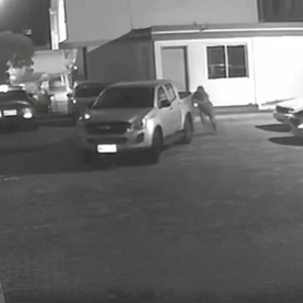 En video se observa el momento en que dos delincuentes encapuchados ingresan a un conjunto privado para robar una camioneta doble cabina, estacionada en el parqueadero.