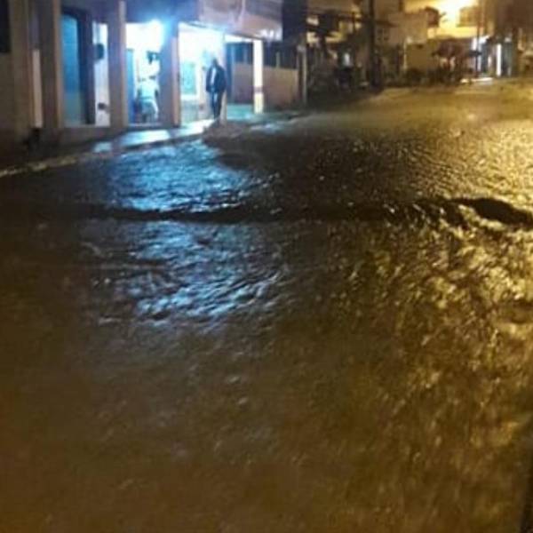 El agua del río corre por la calle principal de la zona poblada, mientras que los habitantes se han ubicado en zonas seguras. Foto: Twitter