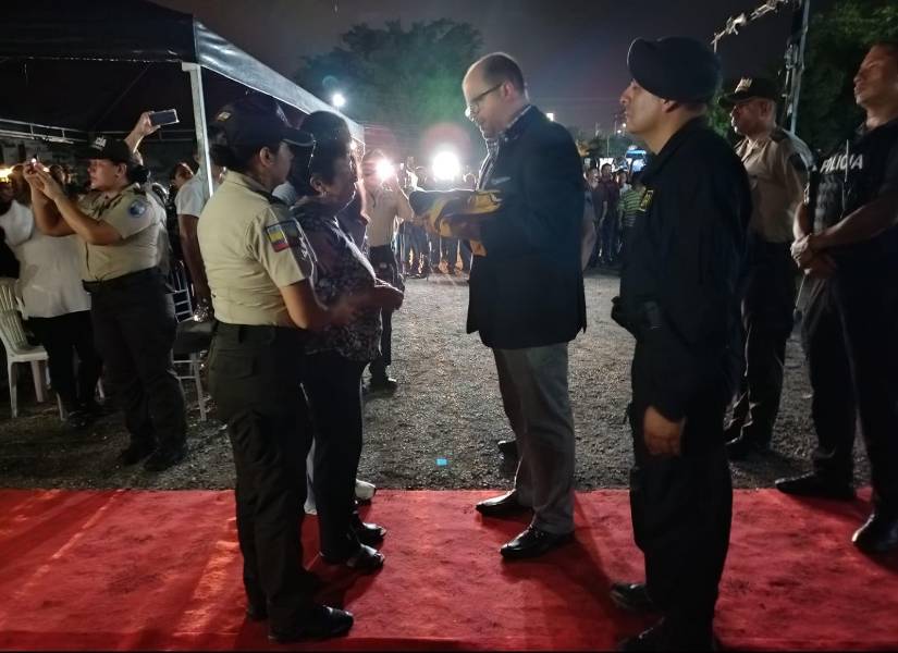 Criminalística recogió indicios y con la ayuda de un helicóptero fue trasladado el cuerpo del uniformado abatido hasta Guayaquil, donde su cuerpo es velado en una capilla ardiente de las instalaciones del GIR en la Vía a la Costa, al oeste de Guayaquil.