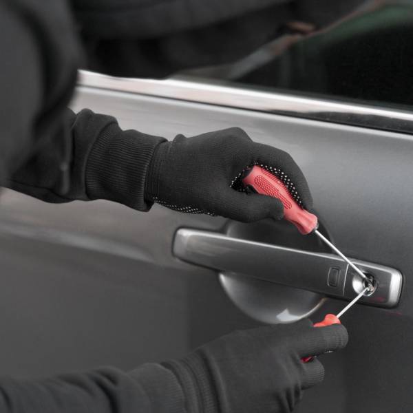 Imagen referencial de una persona robando un auto en la calle. ( )