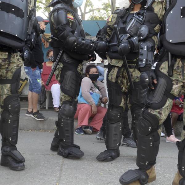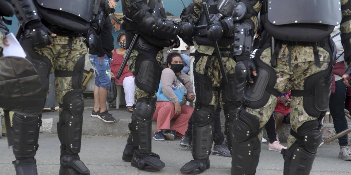 Familiares de reclusos esperan noticias afuera de la penitenciaría del Litoral en Guayaquil, Ecuador, el jueves 30 de septiembre de 2021. (AP Foto/José Sánchez)( )
