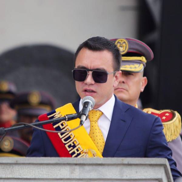 Noboa, en un discurso de cuatro minutos, resaltó el trabajo de las Fuerzas Armadas, tras la declaratoria de conflicto armado interno, en enero de 2024, y, sin citar, se refirió a la vinculación de políticos con el narcotráfico.
