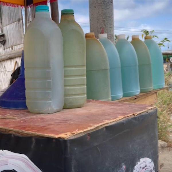 Cada media cuadra, un puesto improvisado ofrece diésel ecuatoriano en botellas de vidrio o pomas plásticas. Las mesas están incluso a pocos pasos de la gasolinera oficial.