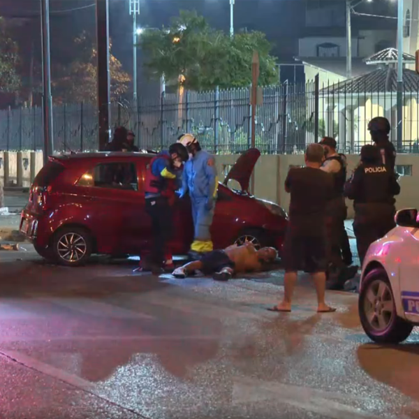 La huida terminó en la intersección de las calles 29 y El Oro luego que el vehículo se chocara contra el parterre, tras un enfrentamiento de bala entre policías y delincuentes.