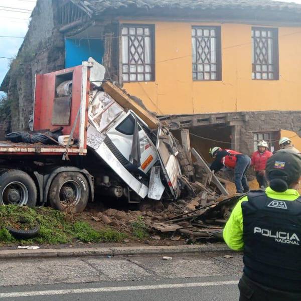 Dos personas fallecieron tras el choque de un tráiler con una vivienda en la vía Alóag-Santo Domingo