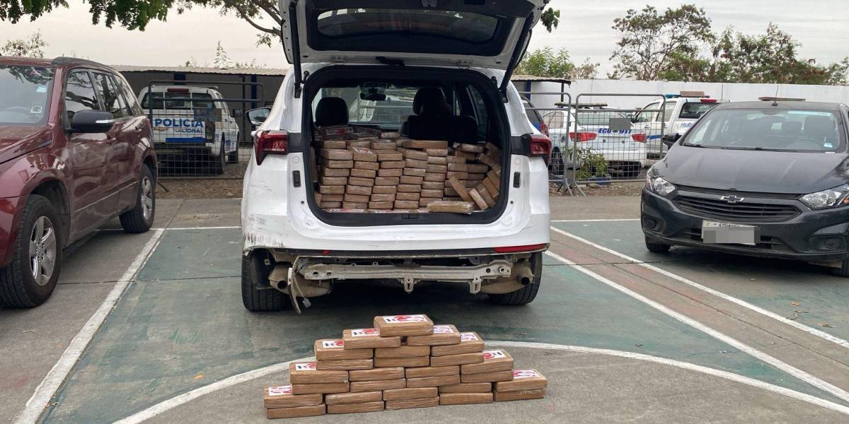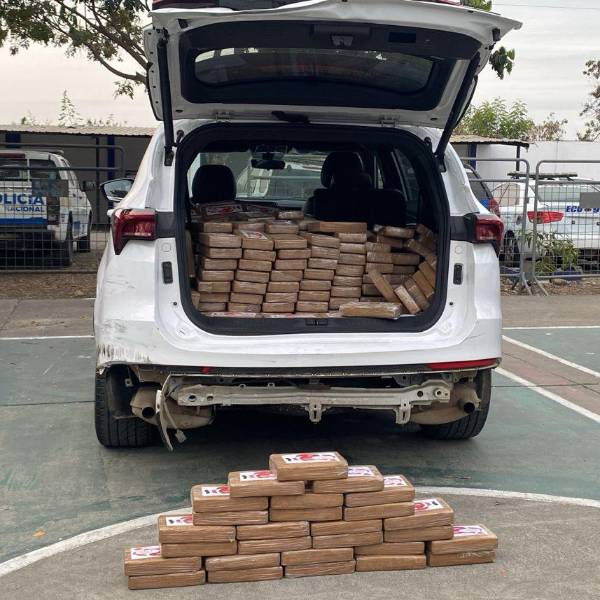 Un total de 328 bloques de cocaína fueron encontrados dentro de un vehículo que quedó abandonado en un centro comercial del cantón Daule, en la provincia del Guayas, en medio de una persecución policial. Los ocupantes del automotor huyeron.
