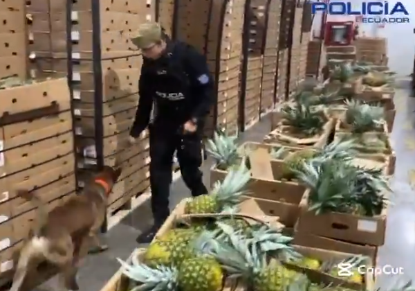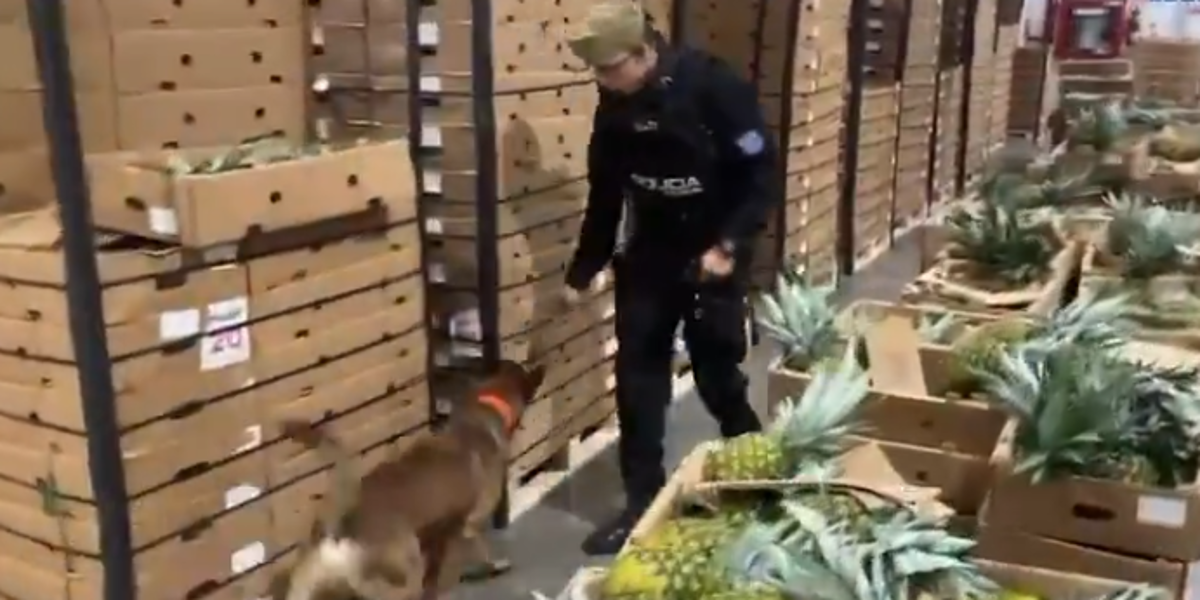 La droga fue detectada gracias a un perro antidrogas durante una inspección completa que los agentes realizaron a un contenedor cargado de piñas en uno de los terminales portuarios.