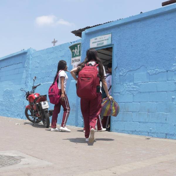 Imagen de estudiantes entrando en una unidad educativa fiscal de Durán.( )