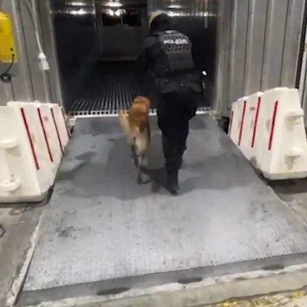 La sustancia fue detectada por un perro antidrogas, que dio el aviso a los agentes, quienes con una máquina levantaron el piso del contenedor para hallar los bloques de cocaína