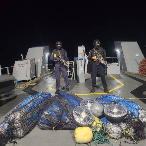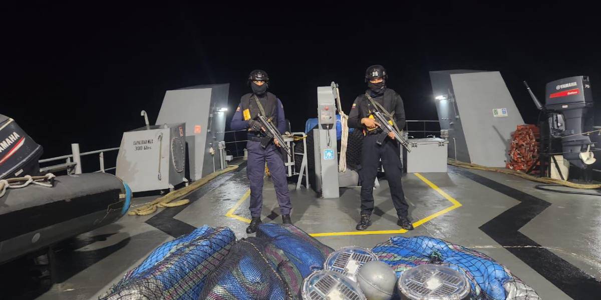 Ocho bultos con armas de fuego fueron hallados en altamar por la Armada Nacional, tras recibir información de inteligencia de la Policía Nacional y de Estados Unidos.