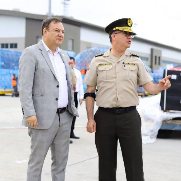 Precisó que el cargamento que llegó el sábado por barco al puerto de Guayaquil será trasladado luego con custodia policial hasta Quito "para que se distribuya a escala nacional para el plan de reentrenamiento".