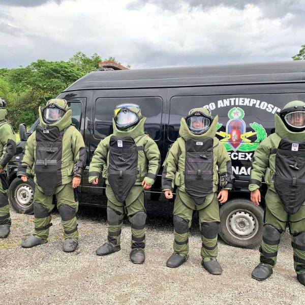 Según datos del Ministerio del Interior, Ecuador cuenta actualmente con nueve trajes antiexplosivos. Siete han sido donados por EE.UU.