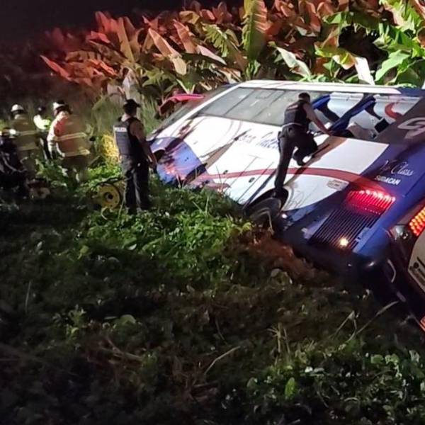 A la 01:56 de este jueves 02 de mayo de 2024, en la avenida Panamericana, a la altura del sector Motuche de Machala, capital de la provincia de El Oro, un bus de transporte interprovincial sufrió un siniestro de tránsito.