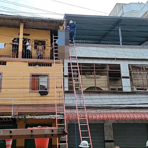 El cuerpo del individuo quedó suspendido entre los cables y el cerramiento de una vivienda, ubicada en la calle Machala entre Portovelo y 19 de Octubre. Detrás de él llevaba el electrodoméstico en una sábana.