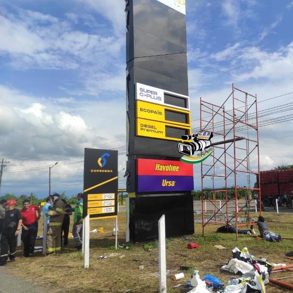 La tarde de este viernes, 1 de abril, cuatro hombres que realizaban trabajos cambiando unos letreros afuera de un gasolinera en el cantón El Triunfo resultaron electrocutadas.