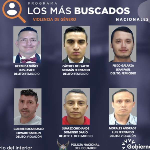 Cáceres aparece entre otros sospechosos de femicido, tentativa de femicidio o violación. Junto a él se encuentra la foto de Luis Javier Hermida Núñez, presunto responsable del femicidio de Lisbeth Baquerizo, de Hermida no se conoce su paradero desde hace más de un año y nueve meses.