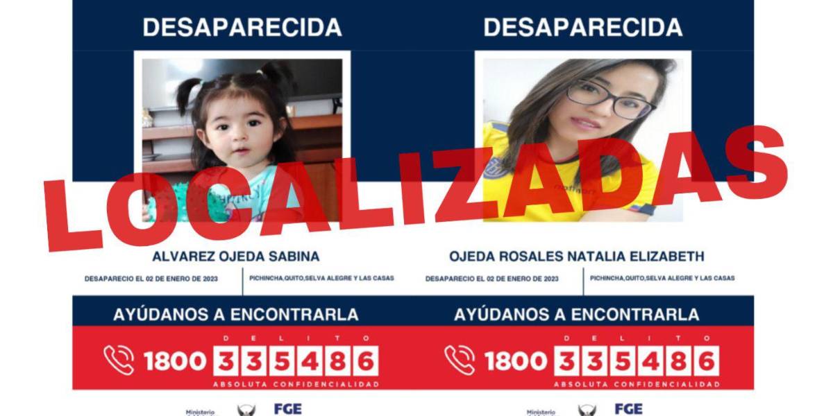Natalia Ojeda y Sabina fueron encontradas con vida, según informó la Fiscalía la noche del 26 de enero de 2023. Según detallan, no se encuentran en situación de riesgo y abandonaron el país por su voluntad.