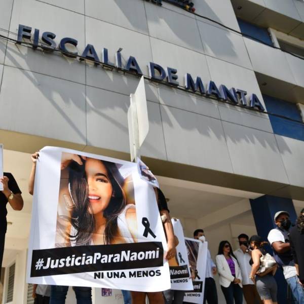 Este martes, en los exteriores del edificio de la FGE, en Manta, un grupo de personas pidió justicia por la muerte de Naomi. La concentración en la avenida 4 de noviembre, en el centro de esa ciudad, pretendía coincidir con las versiones que tenía que tomar la FGE.