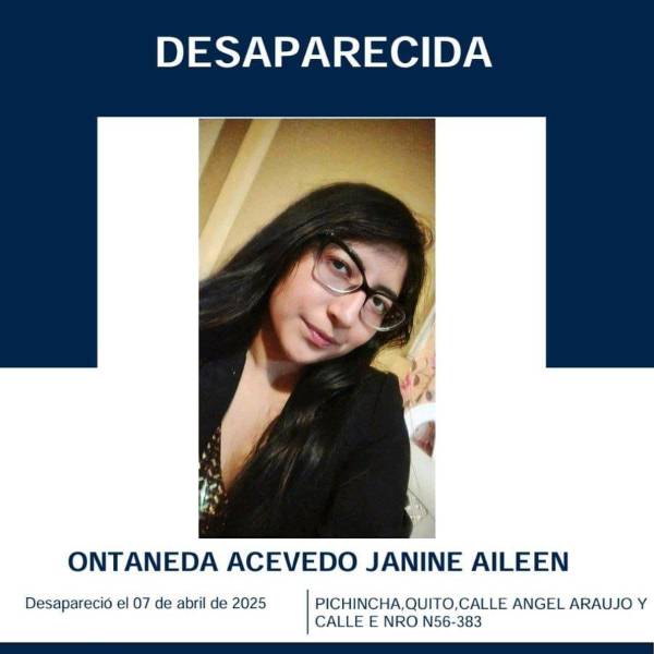 El paradero de Janine Aileen Ontaneda Acevedo es desconocido desde la mañana del 7 de abril de 2025. Lo último que se supo de la chica, de 18 años, fue que salió de su casa en Atucucho, al noroccidente de Quito, con dirección a la Universidad Central.