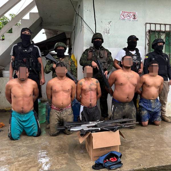 Según la Policía Nacional, los cinco extorsionadores habrían sustraído armas de fuego a una camaronera. Son identificados con el grupo terrorista Los Choneros.