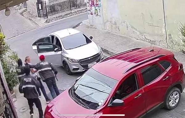 Imagen del momento en el que fue secuestrado un hombre por falsos policías.( )