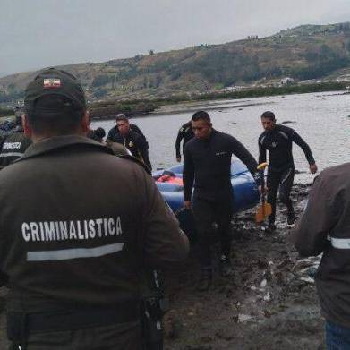 Momento en el que rescatistas salen de la laguna de Colta, provincia de Chimborazo. ( )