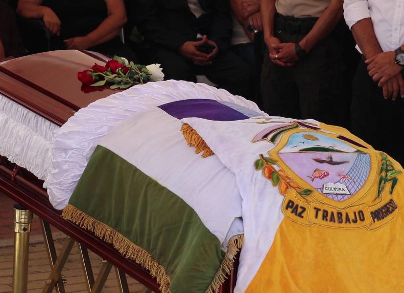 Con una bandera de San Vicente sobre su féretro, Brigitte García, la alcaldesa más joven de Ecuador, fue sepultada ante familiares, políticos y allegados en su natal Canoa, este martes 26 de marzo.