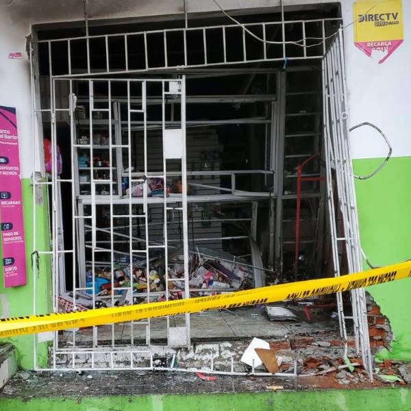 Una farmacia en Pascuales, al norte de Guayaquil, quedó destruida este viernes 15 de septiembre por la explosión de un petardo que fue colocado presuntamente por extorsionadores. La detonación, además, generó llamas que consumieron artículos y muebles.